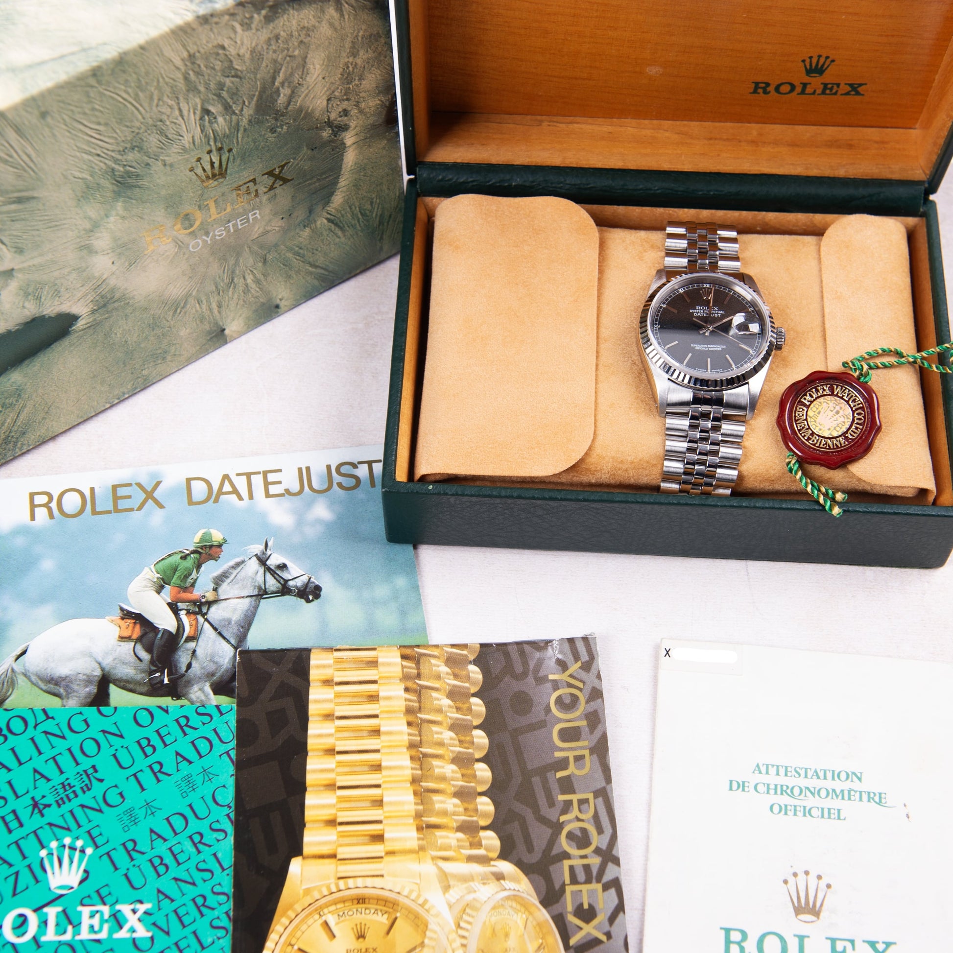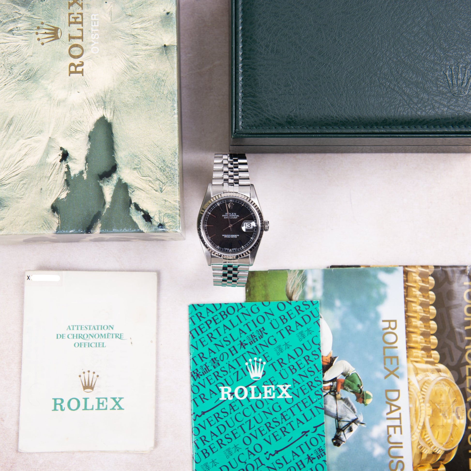 Rolex Oyster perpetual Datejust 16234 Black Stardust Dial 1991 FULL SET
